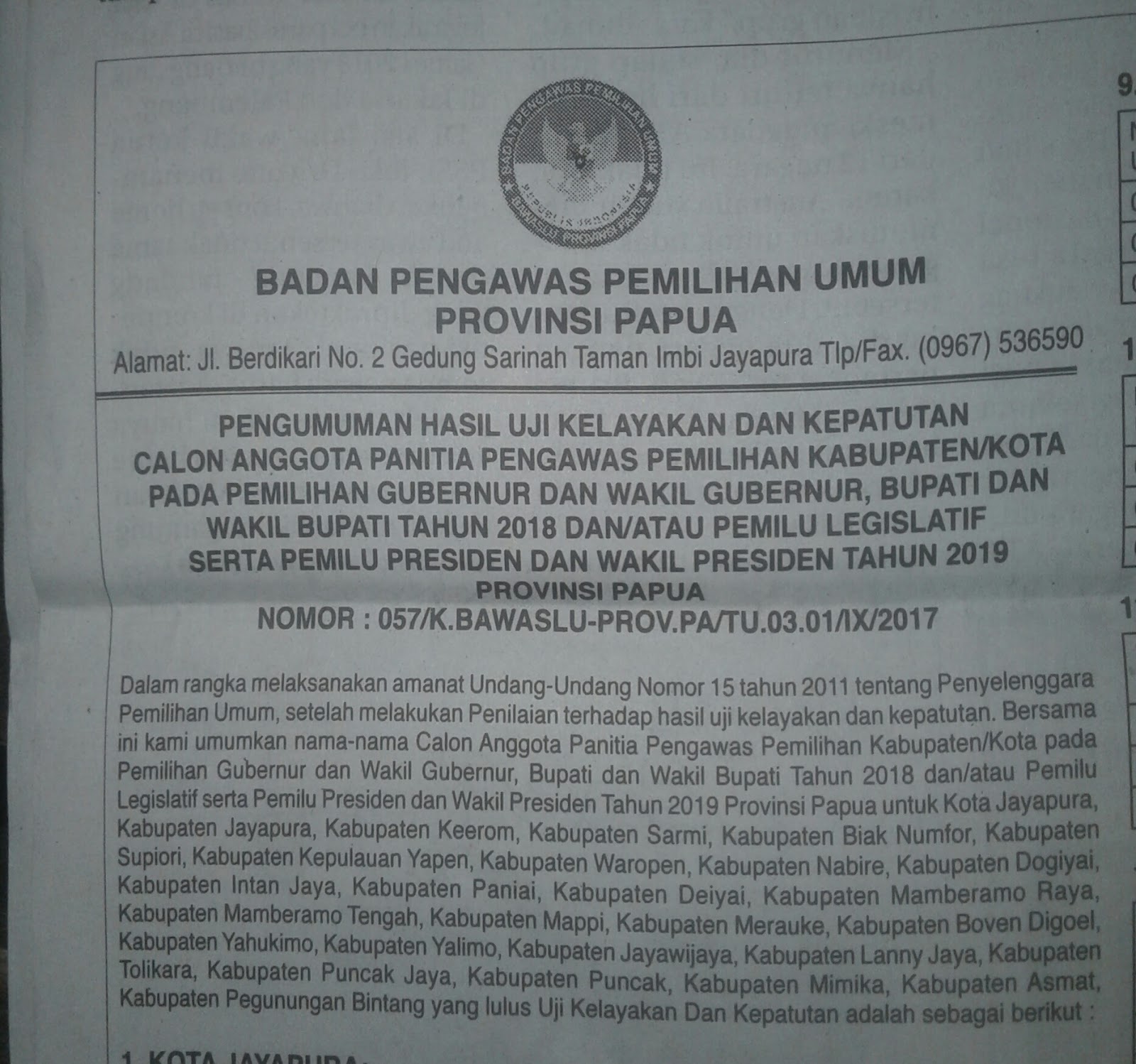TIM SELEKSI CALON ANGGOTA PANWAS KABUPATEN JAYAWIJAYA DAN LANNY JAYA